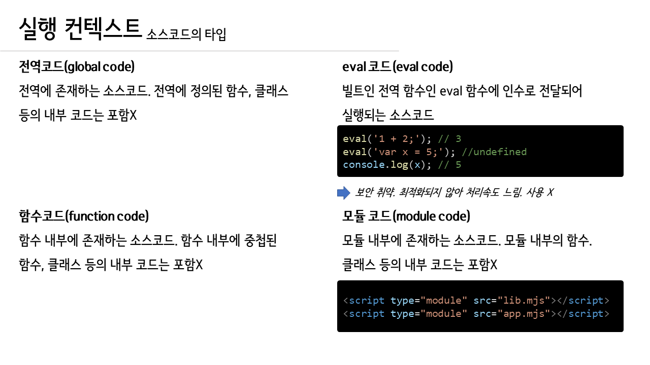 개인적으로 실행 컨텍스트 내용은 모던자바스크립트 딥다이브 내용이 이해가 더 잘 되서 딥다이브 내용을 많이 참고했다.